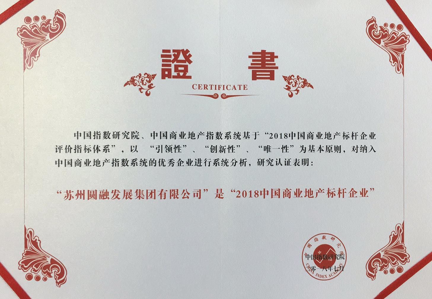 圓融星座獲評為“2018中國商業(yè)地產(chǎn)標桿項目”