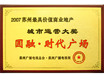 圓融時(shí)代廣場(chǎng)獲評“2007年蘇州最具價(jià)值商業(yè)地產(chǎn)城市運營(yíng)大獎”