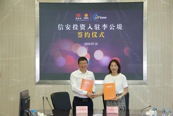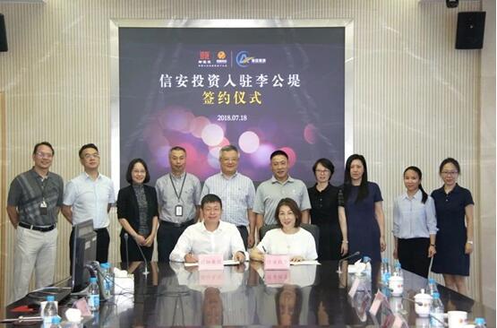 2018年7月18日,蘇州市信安投資有限公司入駐李公堤簽約儀式在圓融集團圓滿(mǎn)落幕。新建元集團黨委副書(shū)記、總裁亢越及集團管理層相關(guān)領(lǐng)導,蘇州市信安投資有限公司董事長(cháng)趙榮全,總經(jīng)理湯微影以及雙方項目組人員共同出席了簽約儀式。