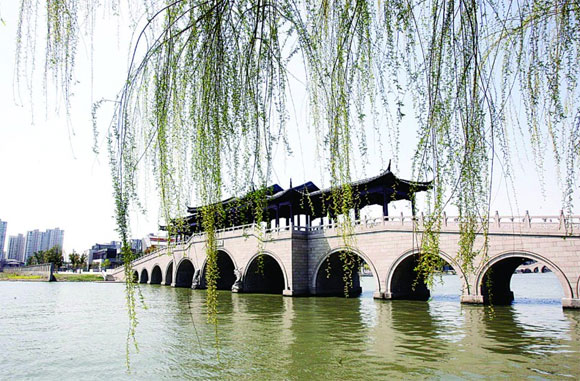 由星湖街轉入蘇勝路,參賽者們將會(huì )在迎曦橋上欣賞到有著(zhù)美麗傳說(shuō)的瓊姬敦。據說(shuō),瓊姬原為吳王夫差的女兒,聰慧美麗、深受百姓喜愛(ài),故其所葬之地被稱(chēng)為“瓊姬敦”。從迎曦橋上向西眺望,兩岸春和景明、綠草茵茵,惠風(fēng)和暢、繁華似錦,給每一位堅持前行的參賽者以心靈的慰藉。