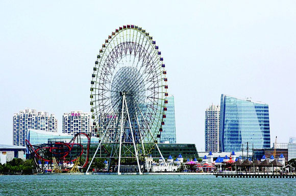 由現代大道轉入圓融時(shí)代廣場(chǎng),奔跑在這個(gè)時(shí)尚消費街區的大街小巷,感覺(jué)頗為奇妙。穿過(guò)壯如巨扇的國際博覽中心,越過(guò)文化水廊,直徑120米的巨型摩天輪映入眼簾。七彩流光的摩天輪在澄澈的藍天下徐徐轉動(dòng),像一個(gè)巨人佇立在美麗的金雞湖畔,俯瞰著(zhù)腳下這片幸福的土地。參賽者將從摩天輪公園門(mén)前經(jīng)過(guò),近距離地感受童話(huà)般的歡樂(lè )氛圍。