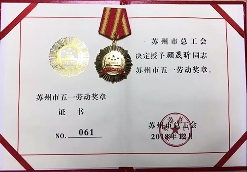 2018年12月,為加快建設知識型、技能型、創(chuàng )新型職工隊伍,表彰先進(jìn),弘揚技能標兵,由蘇州市總工會(huì )授予2018年度市級技能競賽優(yōu)秀選手蘇州市五一勞動(dòng)獎?wù)碌脑u選圓滿(mǎn)畫(huà)上句號。蘇州市總工會(huì )共授予75名各行各業(yè)職業(yè)技能優(yōu)異的同志“蘇州市五一勞動(dòng)獎?wù)隆睒s譽(yù)稱(chēng)號。