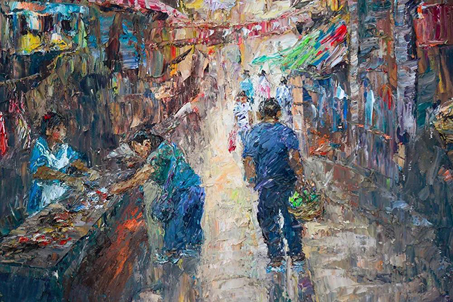 謝金發(fā)老師的姑蘇往事系列油畫(huà)作品,主要描繪逐漸消亡于城市發(fā)展歷史長(cháng)河中的舊街老巷,每一副油畫(huà)作品都記錄著(zhù)蘇州古城過(guò)往的情調,枕河人家、小橋流水、古城傳統、市井生活、古城百姓的生活百態(tài)及感人故事,串起了蘇州歷史長(cháng)河的種種風(fēng)情。