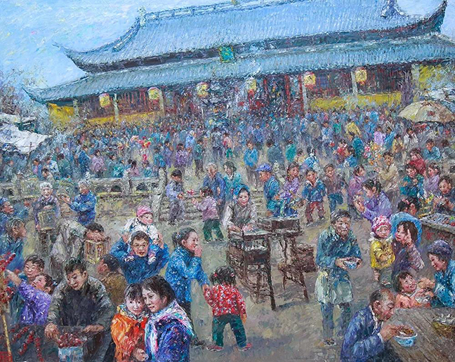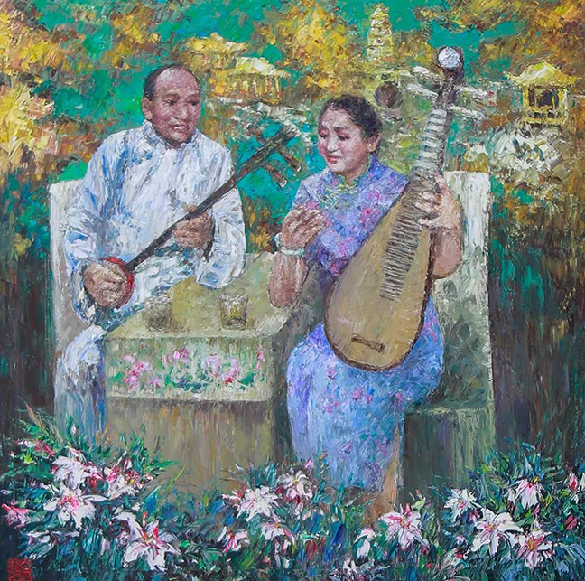 謝金發(fā)老師的作品中往往以和諧恬美的色彩、撲面而來(lái)的生活氣息和濃厚的思鄉之情,帶給觀(guān)者們極其強烈的共鳴。因此,觀(guān)賞謝金發(fā)老師的油畫(huà),不僅僅是一種專(zhuān)業(yè)的學(xué)術(shù)交流,更是一種超越專(zhuān)業(yè)的情感交流。