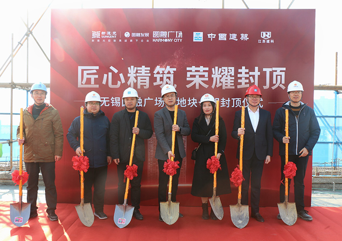 2019年12月7日,作為無(wú)錫市梁溪區建筑工程標準化示范工地的圓融廣場(chǎng)完成一期所有樓棟全面封頂。上午10點(diǎn)多,新建元圓融發(fā)展、中建八局有關(guān)領(lǐng)導和圓融廣場(chǎng)業(yè)主代表,共同完成最后一斗混凝土的澆筑,宣告無(wú)錫圓融廣場(chǎng)一期主體結構全部封頂。接下來(lái)圓融廣場(chǎng)一期將進(jìn)入外立面施工、機電工程和內部裝修階段。預計2021年3月基本完工。