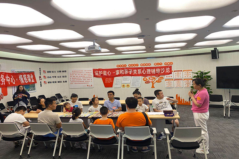 在此基礎上,“家和”幸福驛站項目再接再厲,2020年與圓融商業(yè)街區黨委合作成立“家和”心理輔導站,并開(kāi)展多個(gè)延伸活動(dòng),而本次親子活動(dòng)也是延伸活動(dòng)中的一項,目的是維系離婚后或者冷靜期內的夫妻親子關(guān)系,通過(guò)心理學(xué)的主題活動(dòng)幫助當事人與子女更多相互理解,相互體諒。未來(lái)新建元圓融商業(yè)街區黨委將在情感和精神層面為商圈黨員群眾及其子女提供更深層次的服務(wù),不斷提升商圈黨群服務(wù)價(jià)值,傳遞有溫暖、有情懷的組織關(guān)愛(ài),進(jìn)一步推動(dòng)黨建工作更有成效的開(kāi)展和提升。2020年8月15日上午,由蘇州工業(yè)園區人民法院、新建元圓融商業(yè)街區黨委、葉子家庭情感服務(wù)中心聯(lián)合組織的“法護童心”家和親子關(guān)系心理輔導沙龍在圓融商業(yè)街區黨群服務(wù)中心成功舉行,五組家庭受邀參與活動(dòng)。
