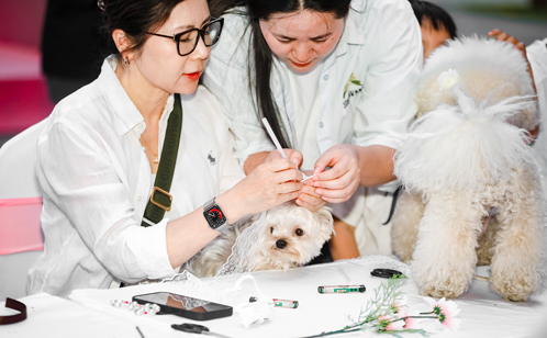 此外,DIY手作工坊也吸引了眾多寵物主人的參與。他們親手為愛(ài)寵打造獨一無(wú)二的鮮花項圈和香薰石膏禮物,傳遞著(zhù)對寵物的深深?lèi)?ài)意。