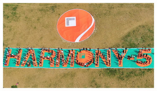 隨著(zhù)家庭日的氣氛進(jìn)入高潮,大家來(lái)到了圓融大廈外的草坪,共同擺出HARMONY-5的字母造型,歡呼著(zhù)“生日快樂(lè )”,留下了溫馨而又獨特的“全家?!?。