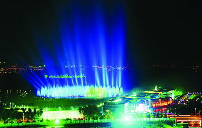 金雞湖西城市廣場(chǎng)的音樂(lè )噴泉是目前華東地區規模最大的水景系統。整個(gè)水景以“水韻飛歌”為主題,東西長(cháng)130米,南北長(cháng)208米,主題噴泉高度可達到108米。噴泉結合激光、電影、音樂(lè )、火焰等元素,生動(dòng)的展現了園區的人文、科技、生態(tài)三大主題概念。