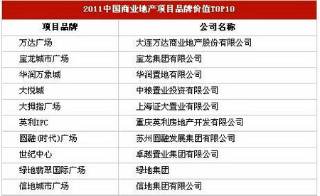 來(lái)自蘇州的圓融集團以“創(chuàng )造影響力、為城市加分”為己任,造城興市,成功打造了圓融時(shí)代廣場(chǎng)、李公堤等一批在中國具有代表性的商業(yè)地產(chǎn)項目,在引領(lǐng)中國新城區商業(yè)地產(chǎn)發(fā)展、引導時(shí)尚休閑生活方式,發(fā)揮了重要作用。經(jīng)過(guò)國務(wù)院發(fā)展研究中心企業(yè)研究所、清華大學(xué)房地產(chǎn)研究所、中國指數研究院的數據分析,圓融集團企業(yè)品牌價(jià)值評估值超過(guò)11億元,榮登“2011年中國商業(yè)地產(chǎn)公司品牌價(jià)值TOP10”榜單,位列第七。同時(shí),以圓融時(shí)代廣場(chǎng)、圓融星座、南通圓融廣場(chǎng)為代表的“圓融(時(shí)代)廣場(chǎng)”商業(yè)地產(chǎn)項目品牌,以?xún)?yōu)秀的產(chǎn)品品質(zhì)和強勢的品牌影響力,為提升城市形象加分加碼,憑借領(lǐng)先的產(chǎn)品品質(zhì)和優(yōu)異的服務(wù)水平打造都市綜合體。項目與萬(wàn)達廣場(chǎng)、寶龍城市廣場(chǎng)、大拇指廣場(chǎng)、大悅城等一同榮登“2011中國商業(yè)地產(chǎn)項目品牌價(jià)值TOP10”榜單,位列第七。