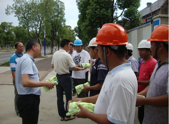慰問(wèn)組一行先后來(lái)到圓融星座、李公堤四期、高鐵新城施工現場(chǎng),為施工人員送來(lái)了人丹、風(fēng)油精等防暑降溫用品,并實(shí)地檢查了各項目施工現場(chǎng)飲用水供應、防暑降溫措施、作業(yè)時(shí)間安排、現場(chǎng)文明衛生及夏季食品安全等情況,要求各項目施工單位,把做好防暑降溫作為目前安全管理的首要工作來(lái)對待,在作業(yè)環(huán)境保障、作業(yè)時(shí)間調整上結合項目特點(diǎn),強化責任與措施的落實(shí),保證工程順利推進(jìn)的同時(shí),做好防暑降溫工作、確保安全生產(chǎn)。